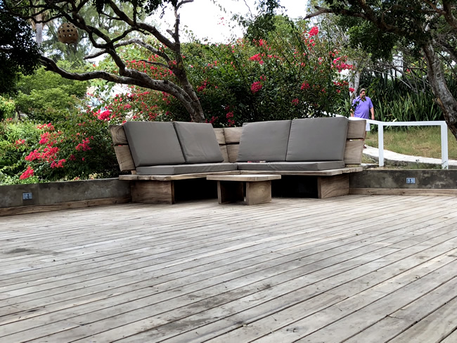 A large gazebo sits right below the verandah, offering lots of comfy space for relaxing. To the left of the gazebo, follow the path to the shaded wooden deck furnished with an additional dining table and built in cushioned wooden benches. This space is perfect for watching the sunset. The seaside thatched gazebo is another great spot for relaxing and counting the waves. The pool area has a queen bed, table and chairs and lots of sun beds, allowing plenty of options for your relaxation pleasure.