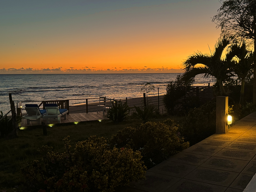 I stayed at Hikaru with family last May…and just returned from another week there, post hurricane Melissa. While it was hard to drive through Black River and see the hurricane damage, once we arrived at Hikaru we were quickly reassured…the damage to the cliff along the coast was extensive, and yet the beach is much wider now and there is a new wooden deck and stairs to the beach. Outside of that, the villa was in perfect shape to welcome visitors…Venesia, Cedrina and Patrick took wonderful care of our group, down to fresh coconut water daily. One evening they cooked fried chicken and lobster for a group of Treasure Beach friends and musicians who gathered together to share an evening off of community repairs! The water was perfectly clear and warm, especially in the small shallow protected area we favor about 100 years down from the villa. Smurf’s Cafe is open, so is Jake’s and Jack Sprat’s and Lobster Pot…but the area is quiet right now as folks return. It really is a good time to go see your friends in Treasure Beach and bask at beautiful Villa Hikaru amongst the flowers and butterflies!!